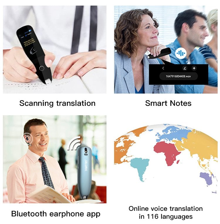112 Language Voice Translator: Translator głosowy obsługuje tłumaczenia online w 55 językach oraz tłumaczenie głosowe w czasie rzeczywistym w 112 językach. Obsługuje międzynarodowe akcenty i może regulować tempo wypowiedzi. To najlepszy wybór do robienia notatek, nagrywania konferencji, podróży zagranicznych, zdawania egzaminów TOEFL, IELTS, ESL oraz obdarowywania prezentami.