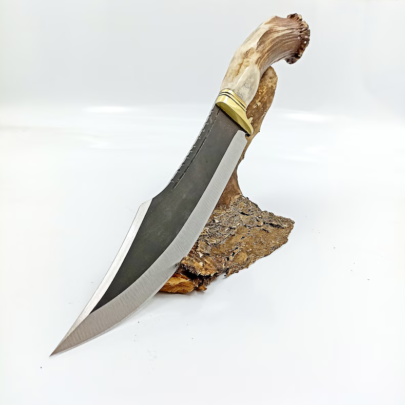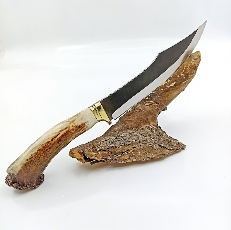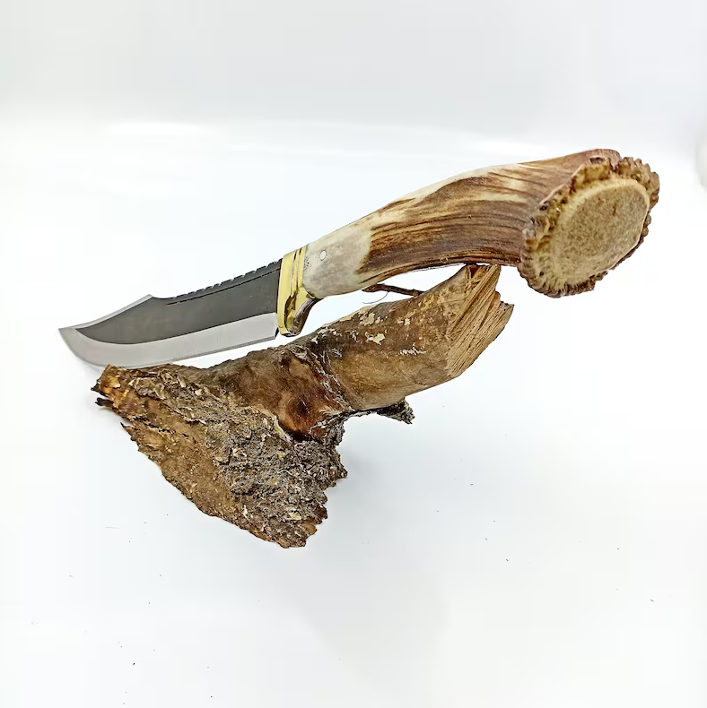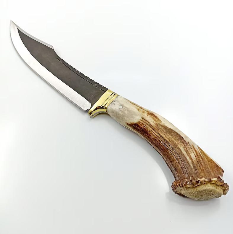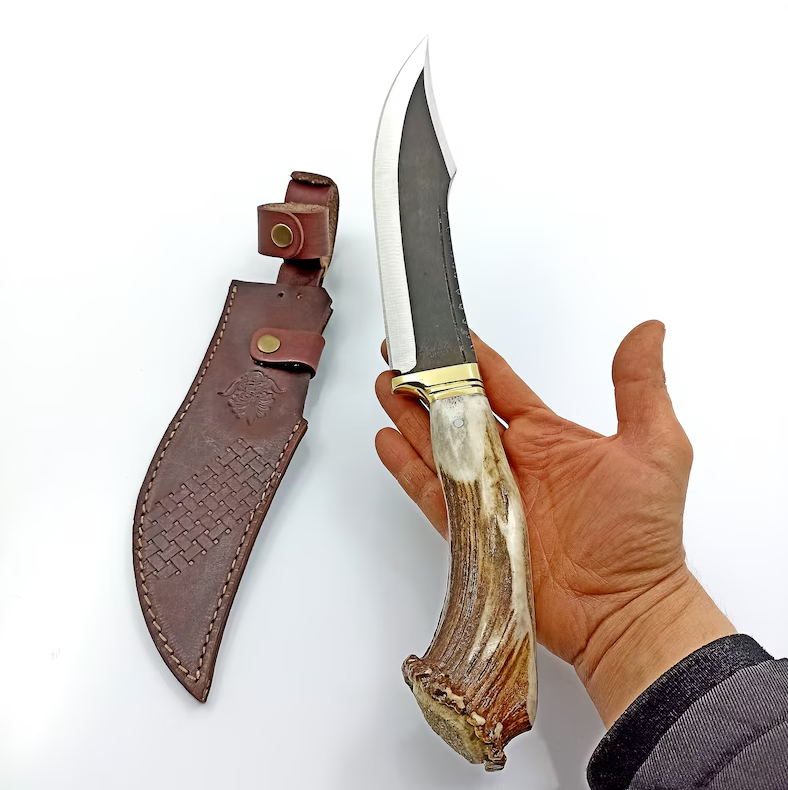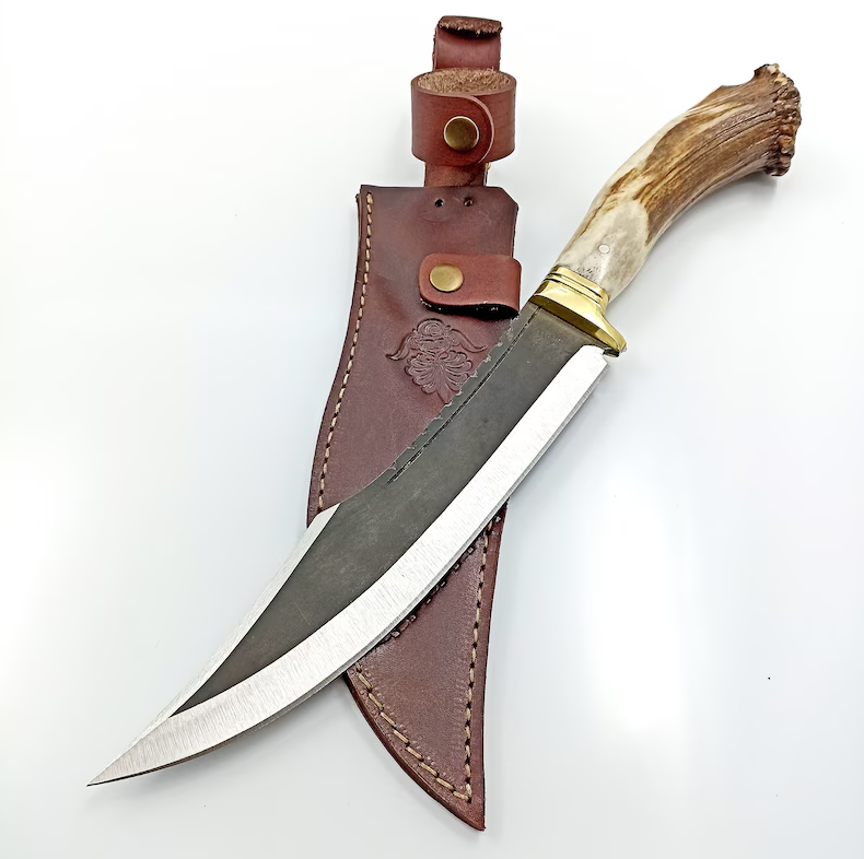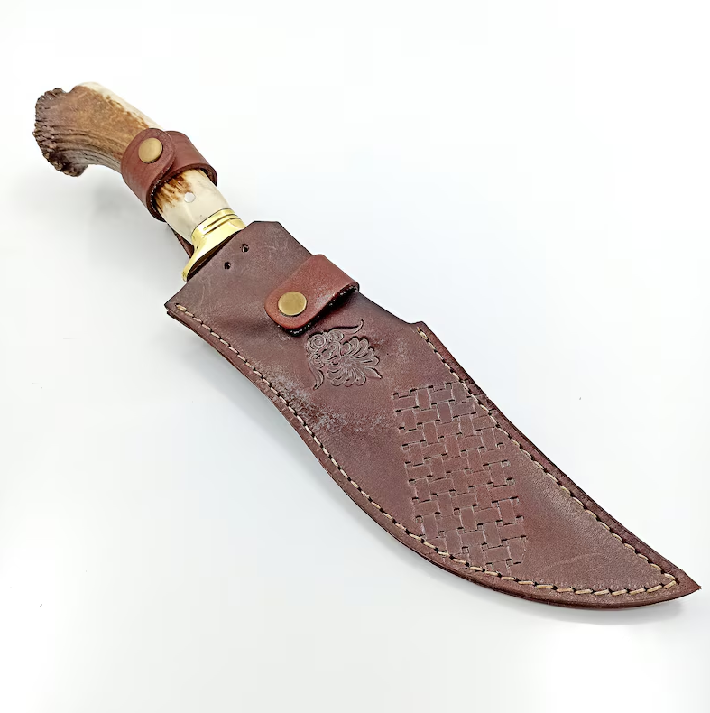 Nóż Bowie z poroża jelenia ze skórzaną pochwą
